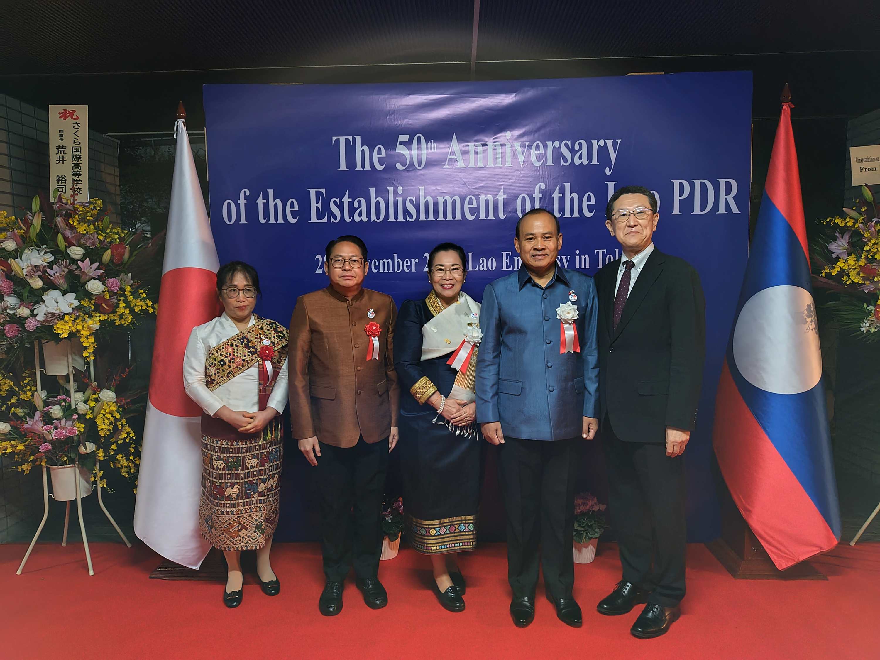 11月28日は、ラオス人民民主共和国建国50周年記念式典が六本木の駐日ラオス大使館で開催され、国光外務副大臣をはじめ国内外から多くの招待客が参列して盛大に行われました。