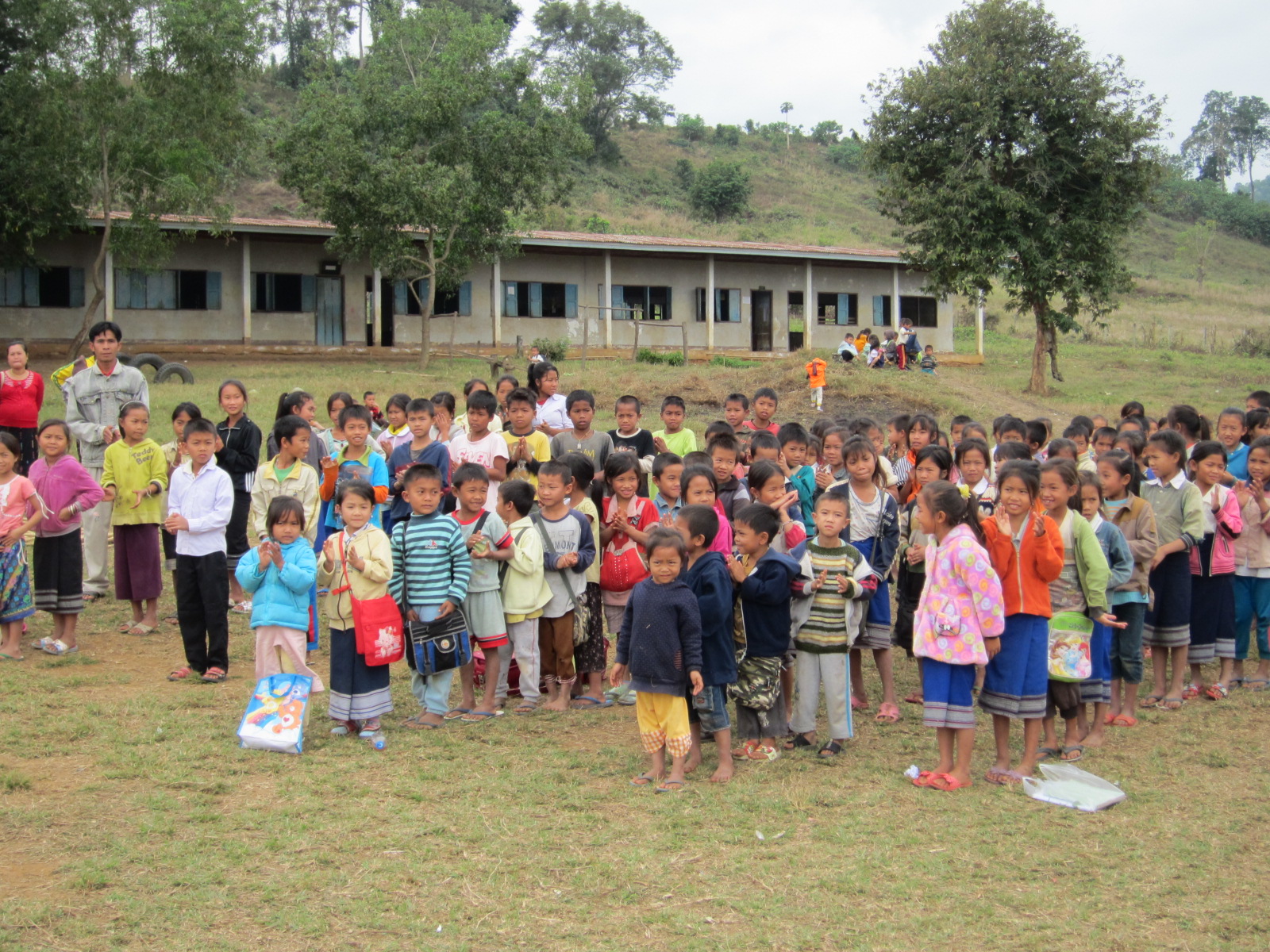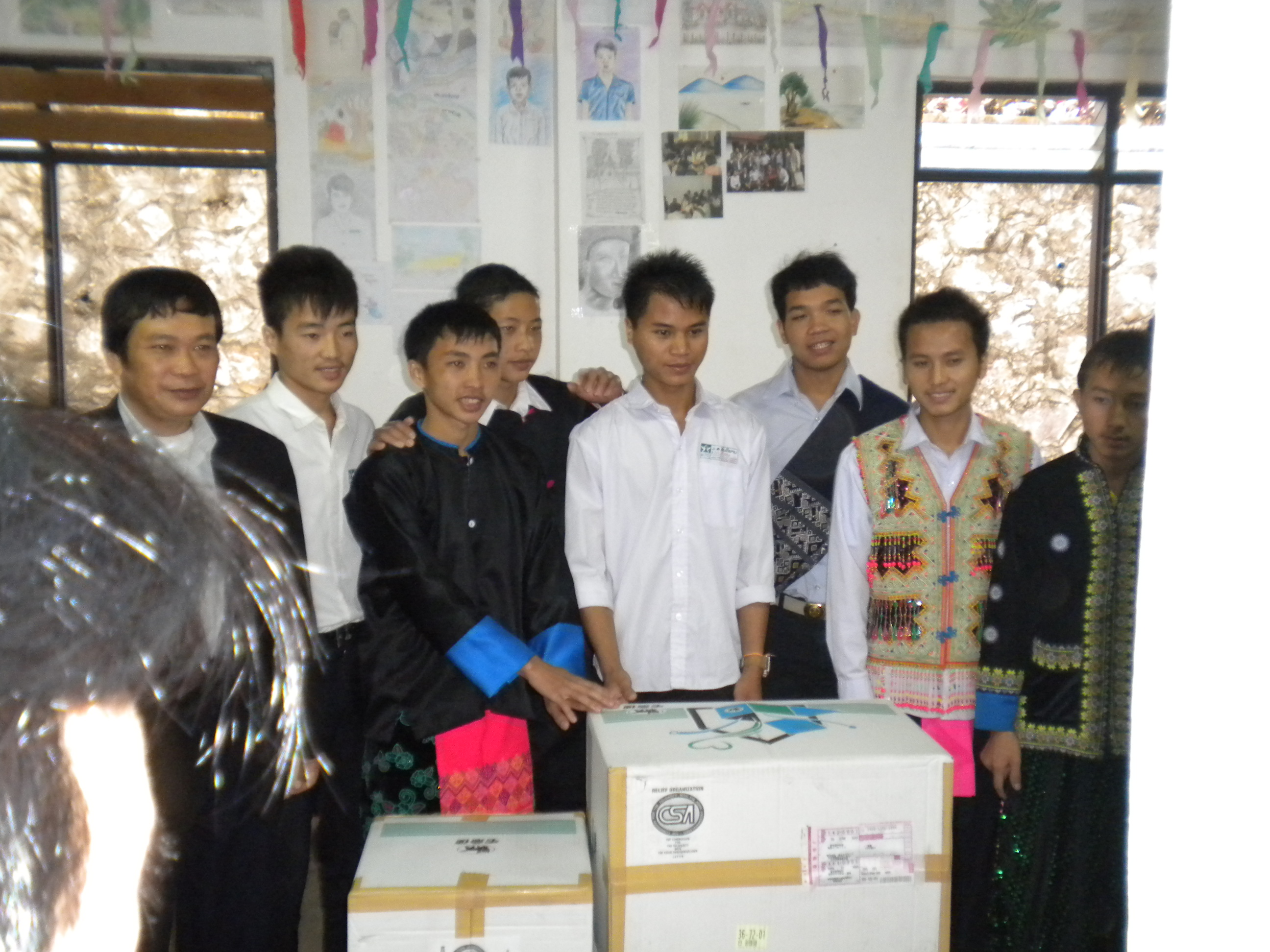 ラオスでは、関係省庁への表敬訪問、CSAが建設寄贈した小学校2校、遠隔地高校生支援のための高校寮を訪問し、小学校では校舎点検のほか文具や運道具の寄贈、さらには綱引きを行い、村人や子どもたちと交流しました。高校寮では寮生たちに救援衣類や文具を手渡し、生徒たちによるラオスの伝統舞踊を見学後、舞踊を習いつつともに踊る、意見交換などをつうじて友好を深めました。