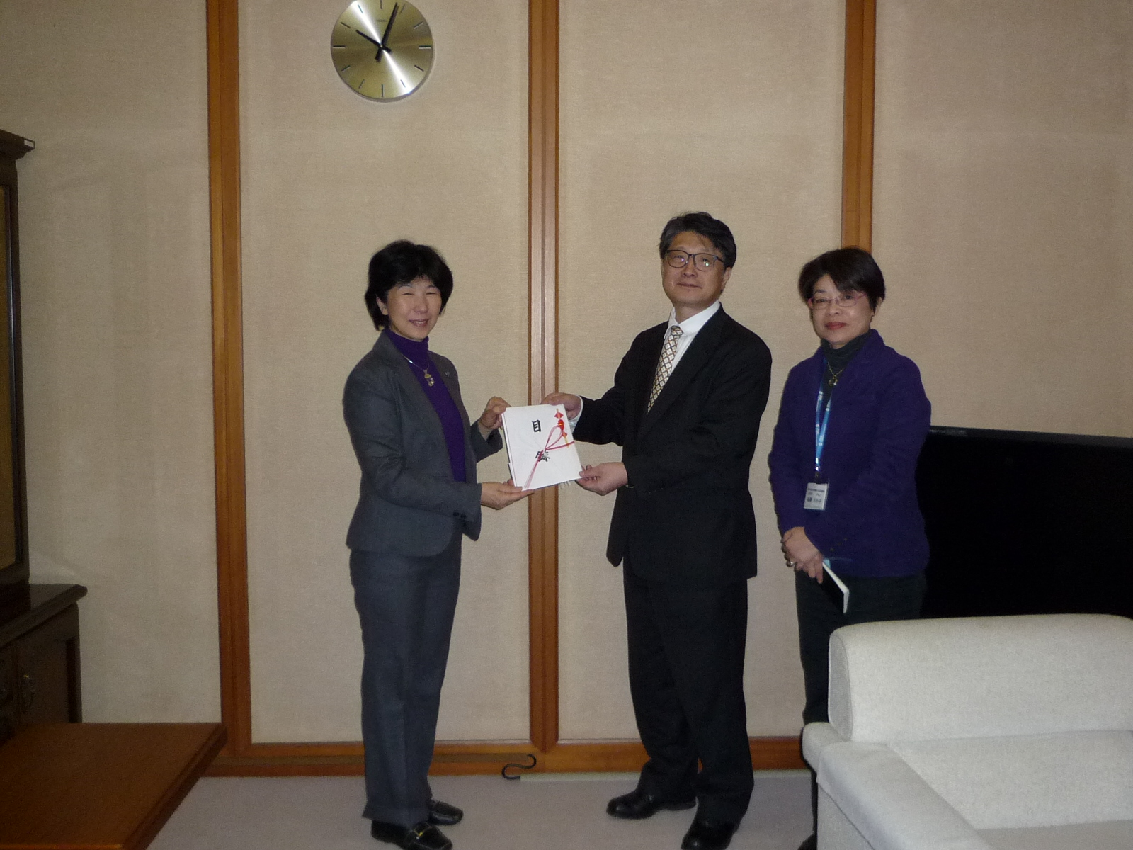1月18日(金)、ゼンセン会館において、逢見直人会長より2012年度輸送募金として¥3,814,975の目録が手渡されました。