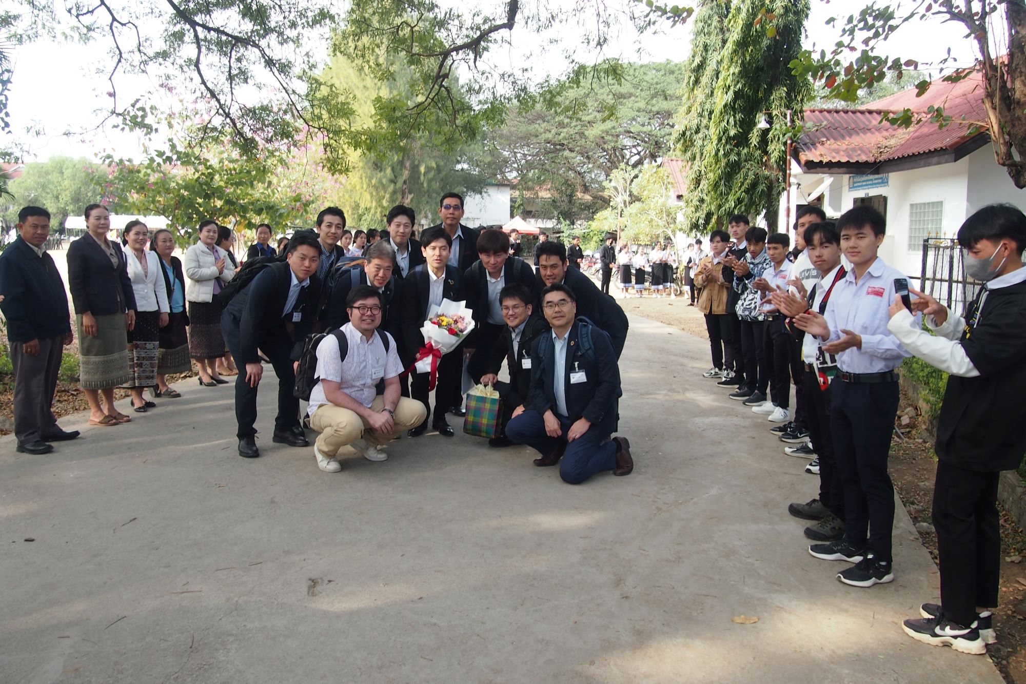 公式訪問では、2002年より寮の運営支援を継続している国内屈指の優秀校サンティパープ高校へ。花束を持った歓迎ぶりに少々照れ臭い気もします。まずは先生から、これまでの物資・教育両面にわたる支援への御礼とこの1年間の報告を受けました。優秀な学生が多いことがよくわかります。また、学生たちとの会話では「皆様のご健勝をお祈りいたします」と大人びた流暢な日本語を話す学生が居て驚きました。聞けば、ネットなどを駆使して覚えたようで、勉学に向き合姿勢には感動します。