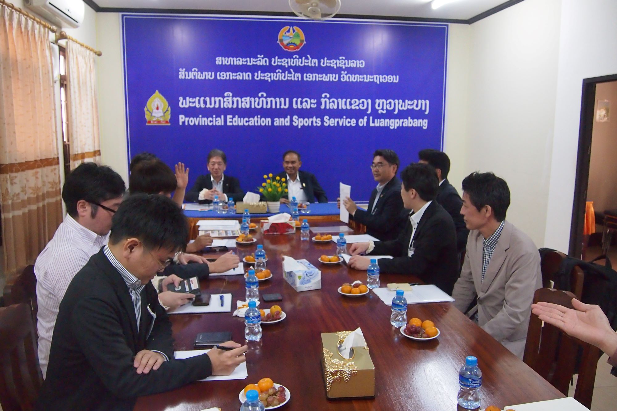 続いて訪問した県の教育・スポーツ省では、ボンジェット局長(国会議員も務める)より、このルアンパバーン県ハドパン村にCSA第26番目の小学校(UAゼンセンより寄贈)を建てることに対し改めて感謝の言葉と、村民も待ち望んでいるとの報告も受けました。建設状況については、定期的に現地コーディネーターより報告を受けるとともに、CSAとして5月に視察を予定、8月に完了、11月の引き渡し式を目指します。
