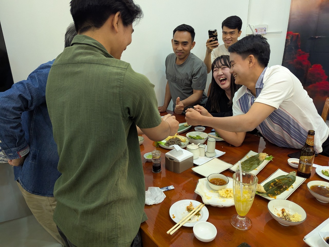 毎回のプログラムの中でも、好評なサンティパープ高校寮卒寮生20名との交流会では、翻訳アプリを駆使しながら、テーブルごとに会話が弾みました。かたことの英語でもなんとかなるものですね。そして、メインのゲーム大会は大盛況で、メンバーと卒寮生が一体となって、大いに笑いはしゃぎました。このゲーム、ラオスで流行る予感がします。年に1度、卒寮生が一堂に会し、CSAの支援に感謝をし、お互いを懐かしむこの企画はこれからも続けていきたいと思います。