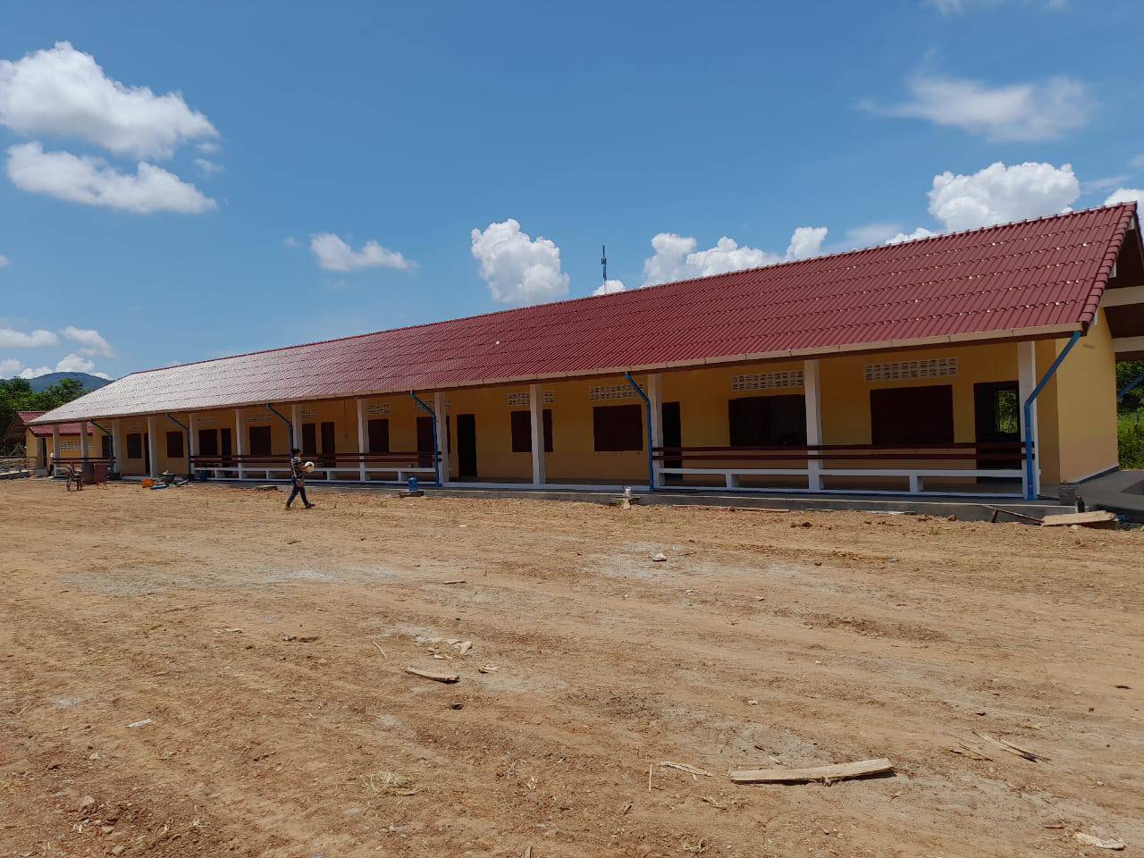 建設した小学校へノートと ラオスに小学校を寄贈する 高校生寮の運営で学生の