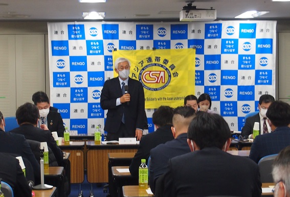 3月23日アジア連帯委員会は、第45回常任理事会並びに第23回評議員会を連合会館内会議室で開催しました。今回の会議は全国の蔓延防止重点措置が解除され、昨年の3月の同会議以降1年ぶりの対面によるリアル会議方式で行いました。