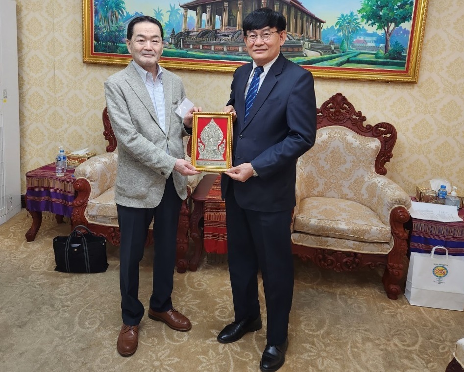 また、ラオス教育スポーツ省大臣との面会では、CSAのこれまでの功績を称え盾を贈呈していただきました。コロナ禍でご苦労をされているようですが、現場に足を運ぶことを大切にされる行動派、日本留学の経験をお持ちの気さくな大臣という印象です。