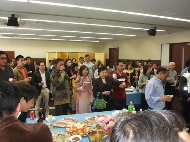 今年のサンティパープ高校生寮出身の留学生3名(センヤン君、ヌー君、クーネン君)も仲間と共に裏方の手伝いに励み、自国の伝統行事に協力参加しました。また留学生二期生(2007年来日)のイェン・ハー君も参加し、吉井会長を始めCSAの仲間や今年の留学生たちと懇談しました。