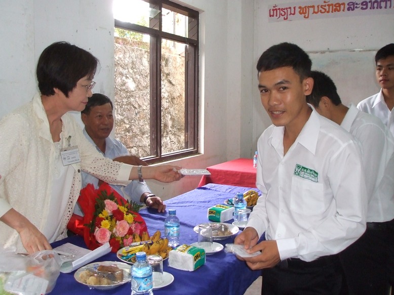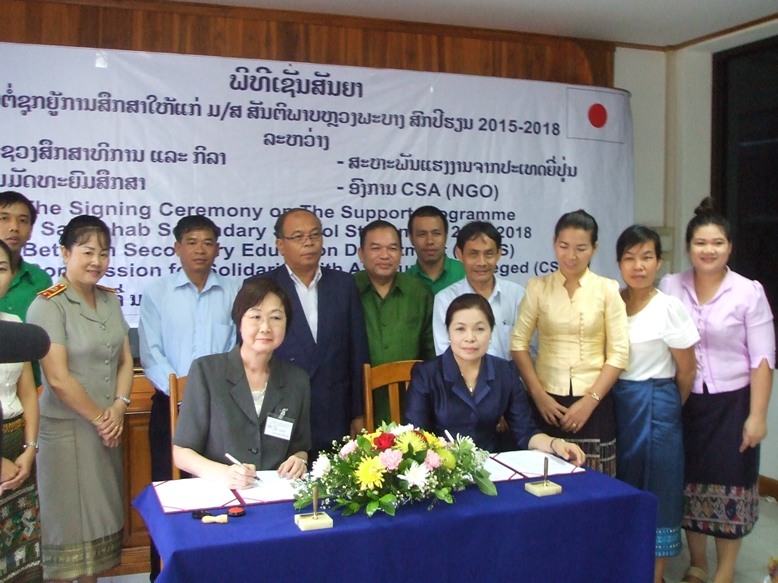 また、山岡事務局長は、教育省中高局のシソウク局長、ルアンプラバン県教育省のユーン局長、サンティパープ高校のスンタン校長を訪ね、3年に一度の高校生寮契約更新の調印を行いました。調印式の中でシソウク局長は、「寮の支援はラオスの将来にとって、非常に有用。ずっと支援してほしい」と述べました。