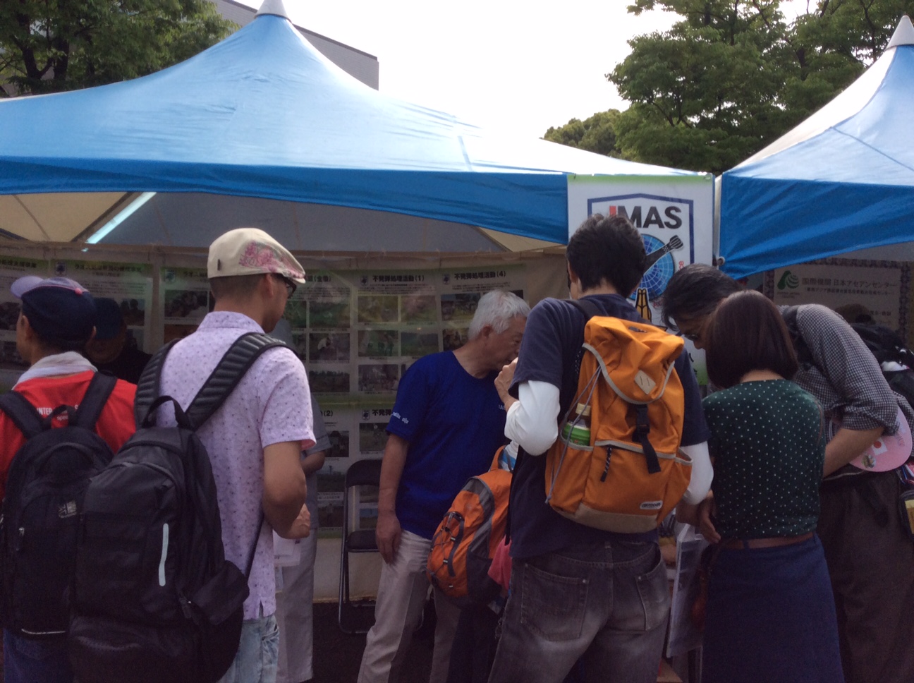 参加したワーキング・スタディ・ツアーメンバー フェスティバル風景 JMASの不発弾処理説明ブース