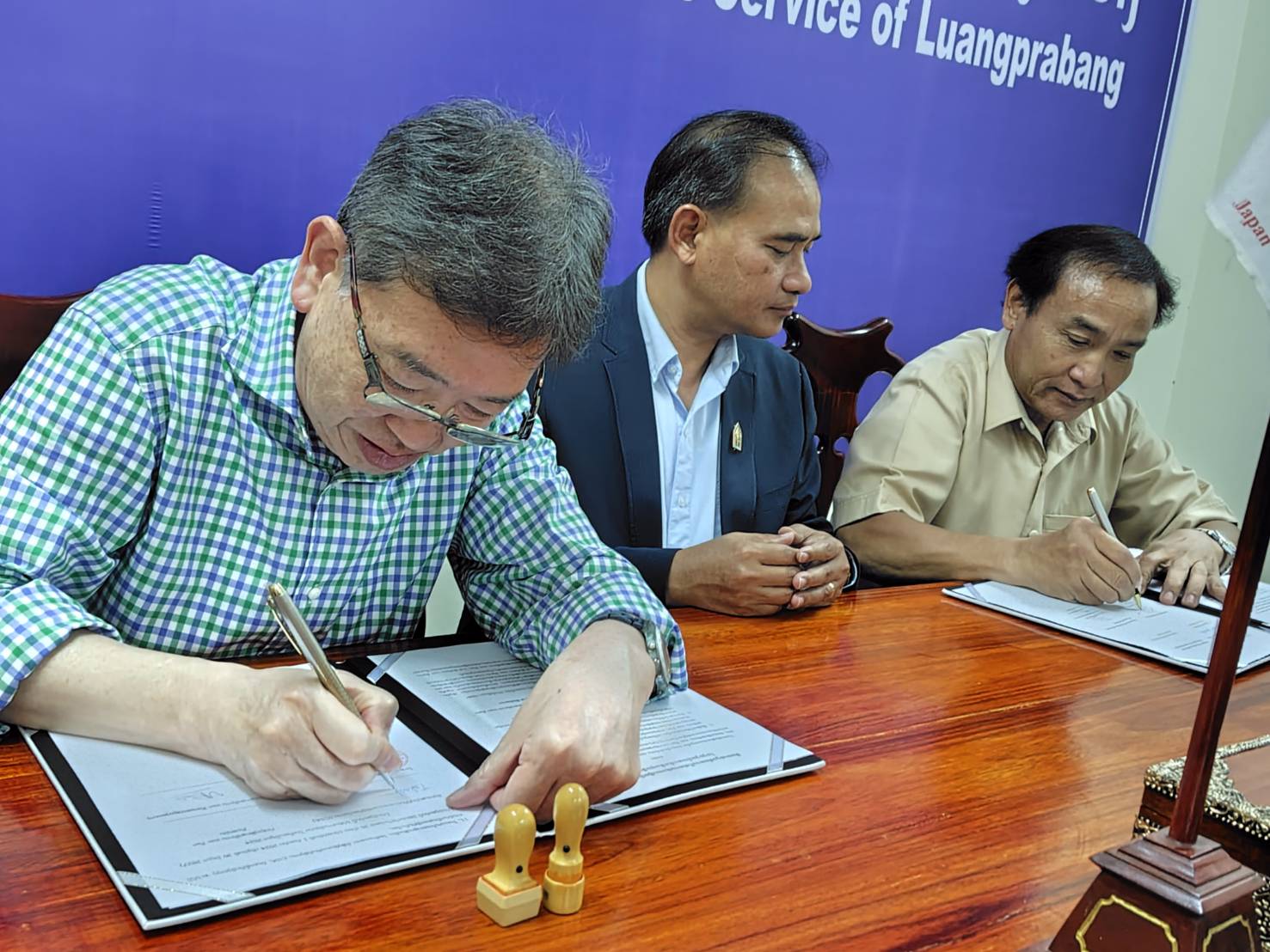 建設中のハッパン村小学校 WSTラオス大使館訪問 高校生寮契約書調印