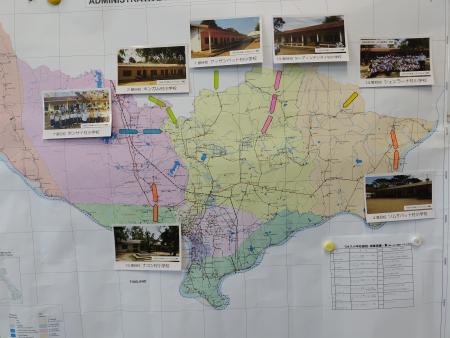 単に貼り直すより、CSAが建設した全26校の小学校がどこにあるのかを分かりやすく表示しようと思い、地区や村の名前は一部の記載にとどまっていますが、地図にポイントして撮影日を明記した校舎の写真も併せて貼り付けることとしました。