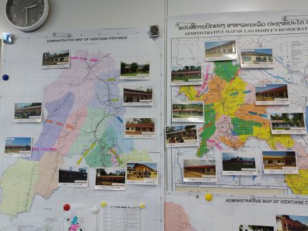 の写真と地図で埋まってます 建設された小学校 ラオス全土の地図