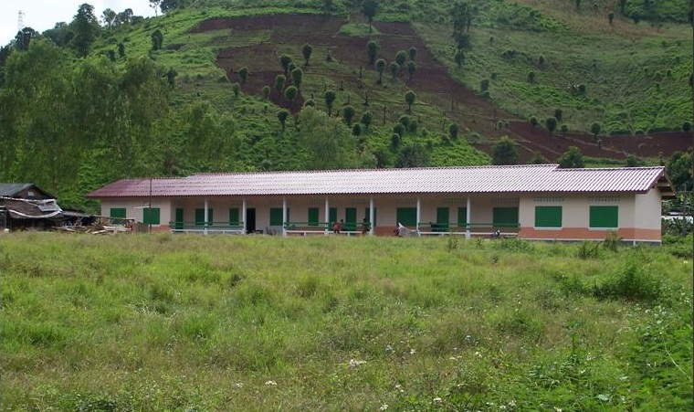 カネボウ労働組合は、CSAのワーキングスタディーツァーに参加した組合員の熱意が発端となり、ここ数年にわたり組織内カンパ運動を展開し、本年の小学校の建設・寄贈となった。窓と扉がカネボウ労働組合のテーマカラーであるアーリーグリーンに統一された、周りの山々との調和がとれた校舎は10mx24mのコンクリート敷き1棟5教室、1職員室にトイレで構成されている。パチャオ村は人口1,718人、生徒数は401名の山村であり、今回の小学校建設により子どもたちが良い環境で勉学に励める、と父兄、村人に歓迎されている。