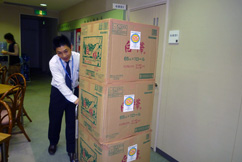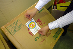 | 箱にCSAステッカーを張ります → | さあ、発送です! → |