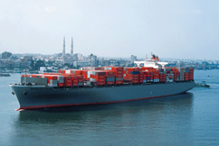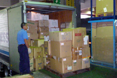 | 大井の保税倉庫からコンテナに積み込みます → | |