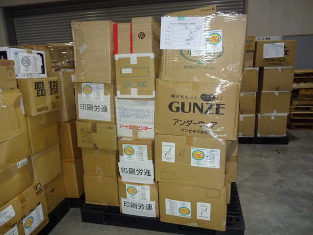 セイノー通関の海野さんの説明では、「①集荷期日前に送られてきた衣類があったが、期間厳守で送ってほしい、②すでにコンテナ8本は積み終えた、③ほとんどの箱にCSAシールが貼られていたが、シールが貼っていない箱にはCSAシールを貼りコンテナに積み込んだ、④ラオス向けの衣類は10月8日に、タイ向けの衣類は10月15日にそれぞれ東京港を出港予定」とのことでした。