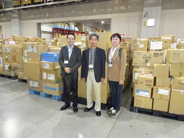 10月5日(金)、アジア連帯委員会は10月1日(月)~5日(金)に全国から届いた中古衣類が保管されている、「江東区新木場のセイノー通関倉庫」を訪問し、 事務局の吉井会長、山岡副会長、鈴木事務局長が、集荷された膨大な数の衣類を確認しました。
