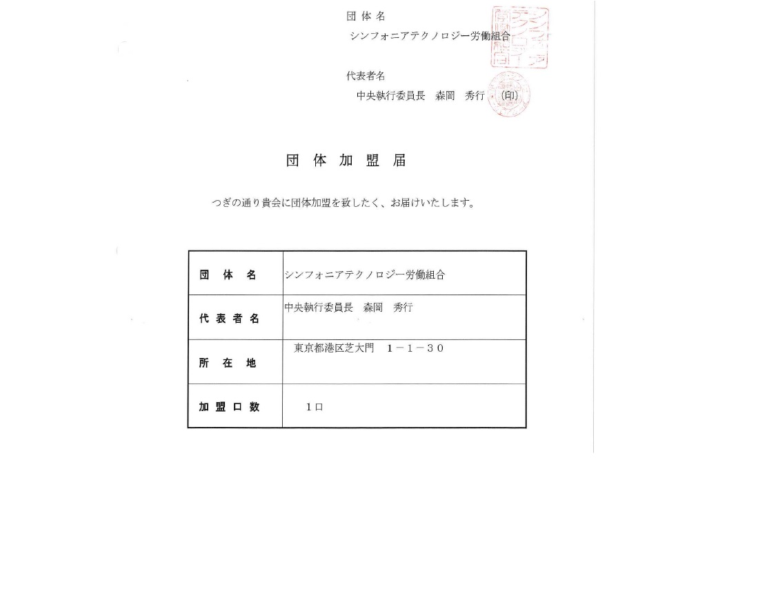 2019.10.24 シンフォニアテクノロジー労働組合が新加盟