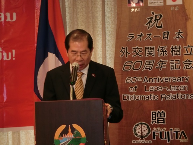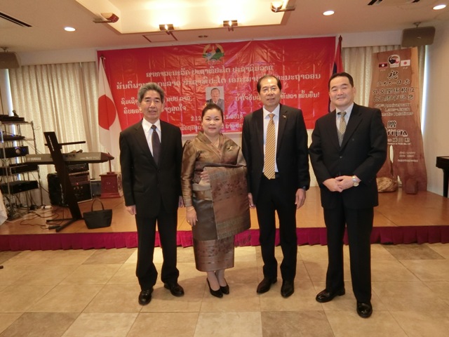 祝賀会冒頭、スンダラー大使は、「ラオスは幾多の困難な歴史を経て、現在のラオス人民民主共和国を建国し、日本等の支援を得ながら安定した国家として43年が経過した。日本の多くの人々の支援と協力に対し、敬意と感謝を申し上げる」と挨拶しました。