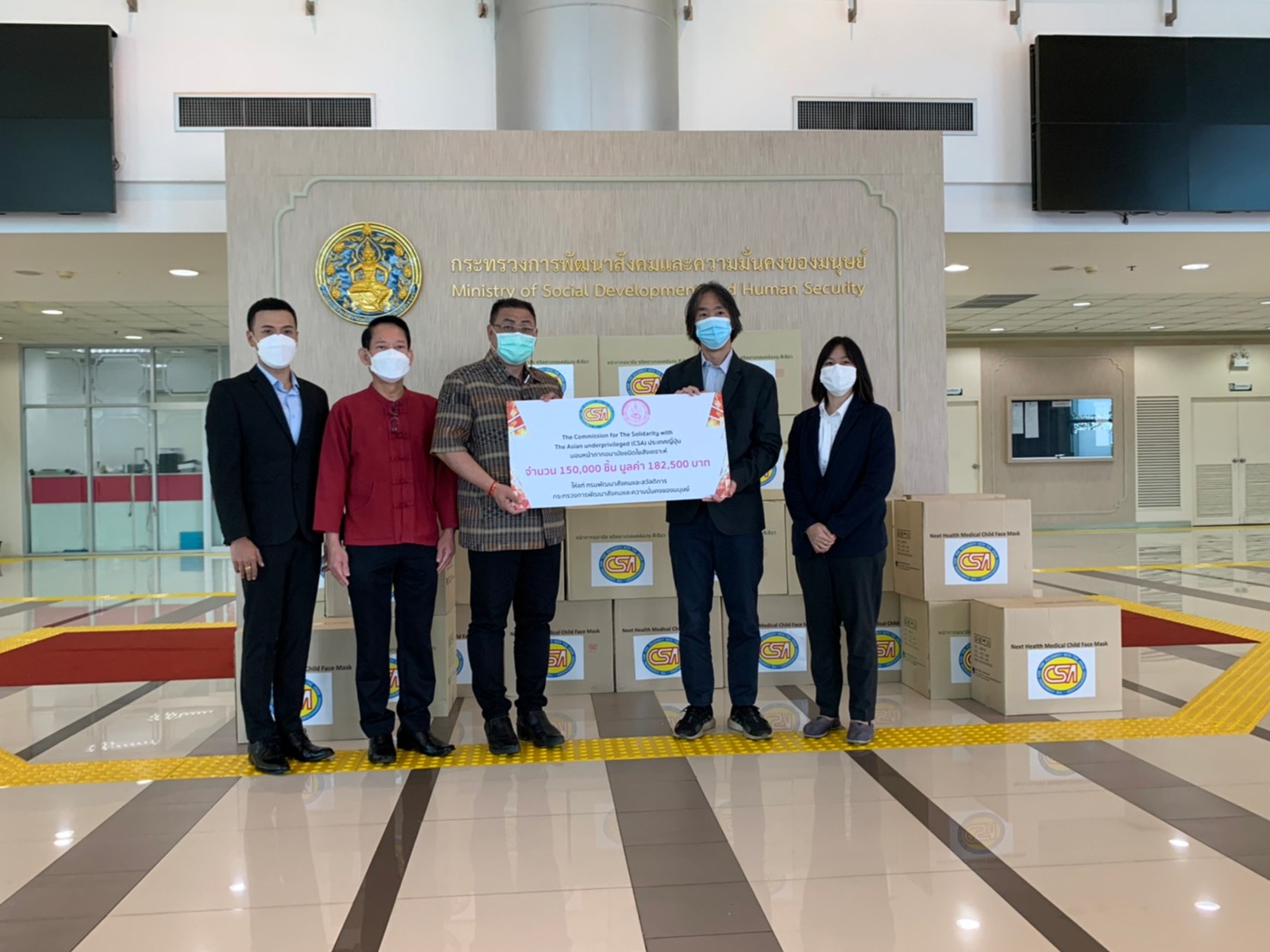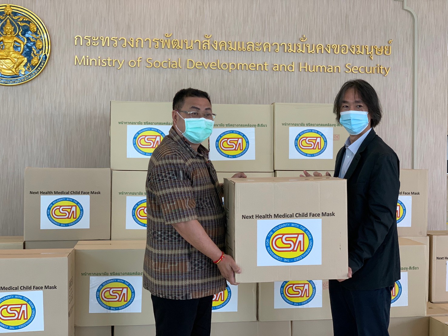 CSAは救援衣類の代替支援としてタイ社会開発福祉省へ不織布マスク(150,000枚)を寄贈しました。