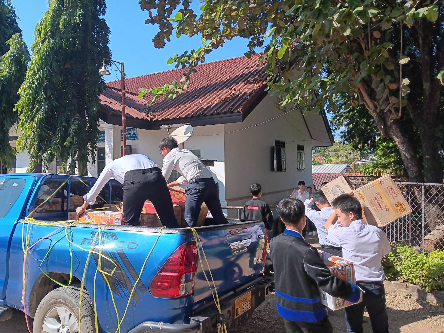 今年度の事業計画にも謳っている中古衣類に代わる物資支援について、現地コーディネーターであるチャオ氏とヌーソン氏が、12月16日、ラオスでも屈指の優秀校でありかつてヌーソン氏も学生時代を送ったサンティパープ高校寮を訪れ、寮生にさまざまな物資を手渡しました。